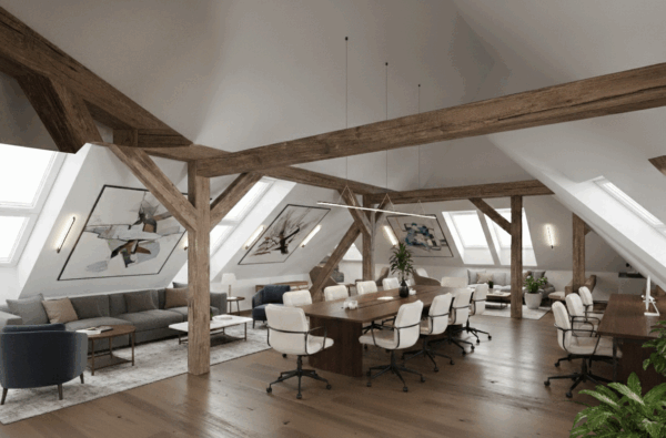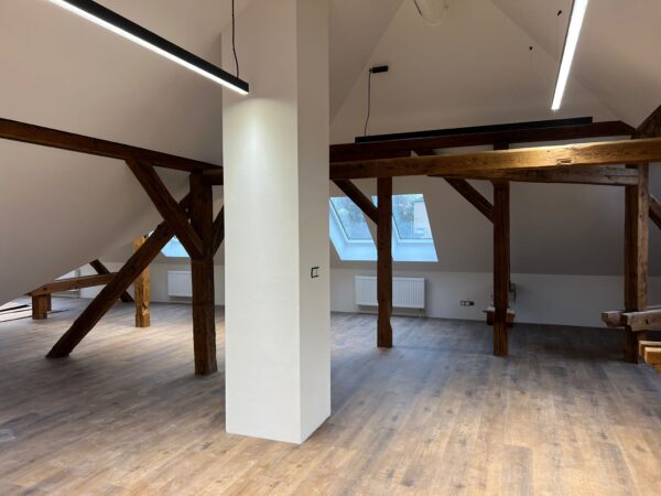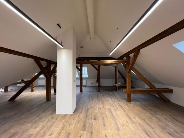 Interiér B (Podkrovie): 88,20 m² – Štýlový a efektívny priestor pre firmu, ktorá si potrpí na dizajn a unikátny charakter.