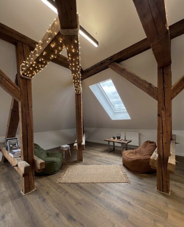 • 100-ročné drevené trámy – sú mojou chrbticou a dizajnovým šperkom, ktorý mi závidia všetky novostavby.